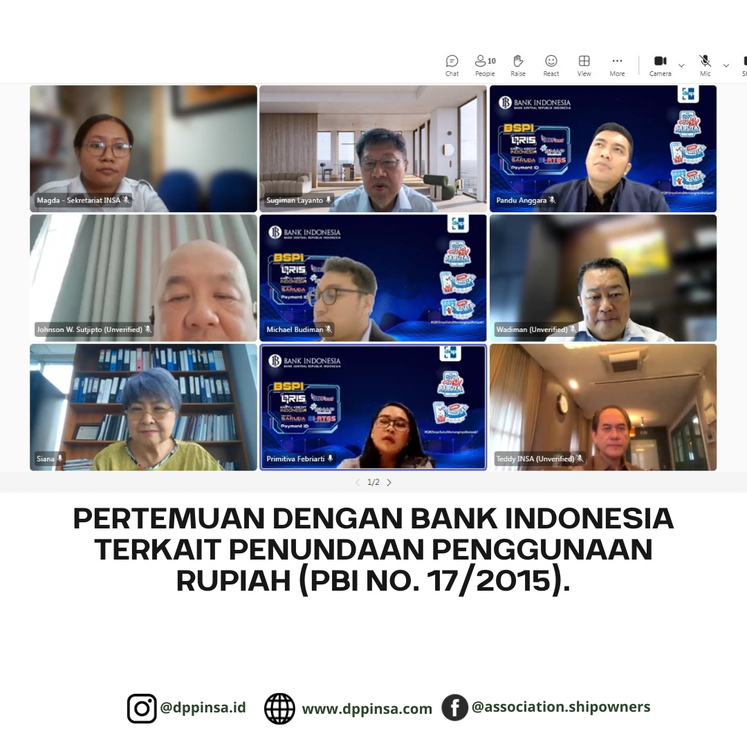Indonesian National Shipowners\' Association menghadiri Rapat Koordinasi Penandatangan MoU Penerapan Onshore Power Supply secara online via zoom meeting.\n\nRapat ini diperlukan untuk pembahasan Nota Kesepahaman atau Memorandum of Understanding (MoU) mengenai Penerapan Onshore Power Supply (OPS) antara Badan Usaha Pelabuhan dengan Perusahaan Pelayaran dan sebagai tindak lanjut Sosialisasi Penerapan Onshore Power Supply (OPS) pada Pelabuhan/Terminal di Indonesia yang dilaksakanakan pada hari Kamis tanggal 21 Juli 2022 serta dalam rangka persiapan pelaksanaan forum Business 20 (B20) yang akan dilaksanakan pada tanggal 17 – 18 Oktober 2022 di Bali.